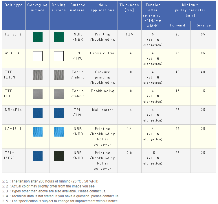 Elastic type : Mail sorter, bank note conveyor, packaging machine, book binding machine, etc.