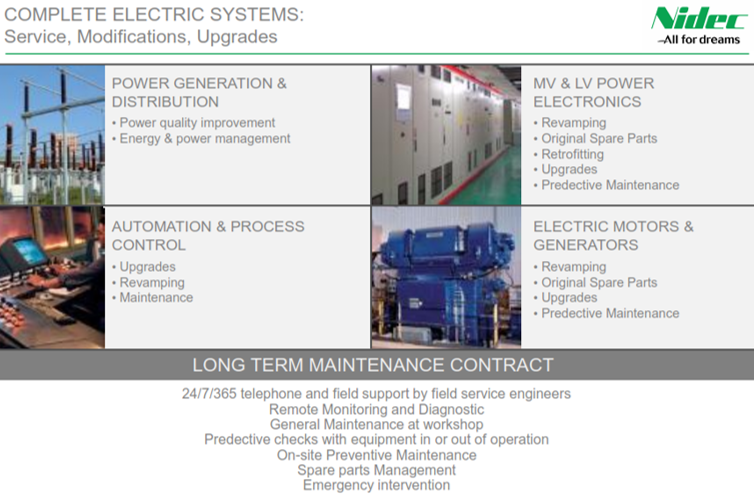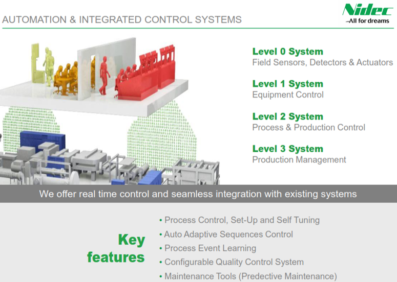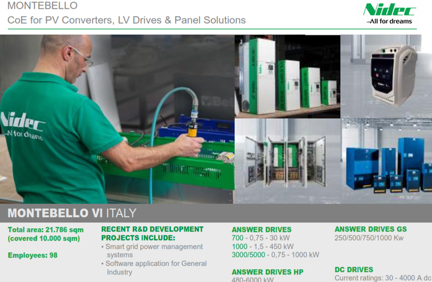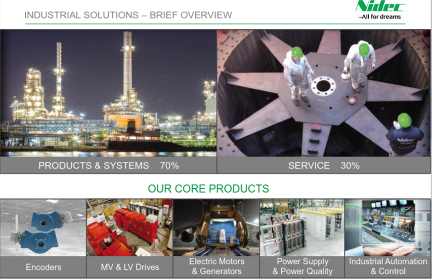 Founded by Shigenobu Nagamori, Nidec started as a small company focused on the development of brushless DC (BLDC) motors, a new technology at the time then Nidec became a pioneer in developing small, efficient motors for electronic devices. Nidec is increasingly recognized as a global leader in electric motor technology, especially for electric vehicles and high-precision industries. Nidec is the world's largest manufacturer of small motors, especially precision motors for HDDs and PC coolers. From this beginning, Nidec has expanded its activities into many industrial products. Today Nidec is active in all types of :