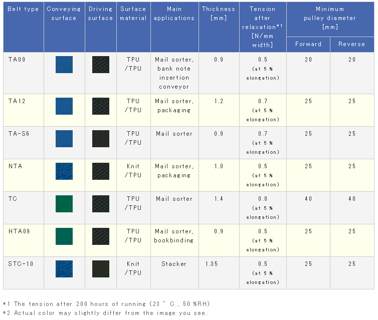 Elastic type : Mail sorter, bank note conveyor, packaging machine, book binding machine, etc.