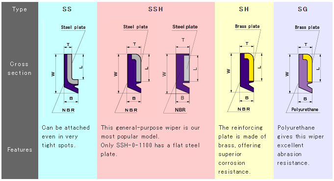 The wiper best suitable for machine tools, etc. that can keep the best accuracy of the sliding bed. In addition to our standard products, we can offer custom-made, seamless moided seal having a special shape.